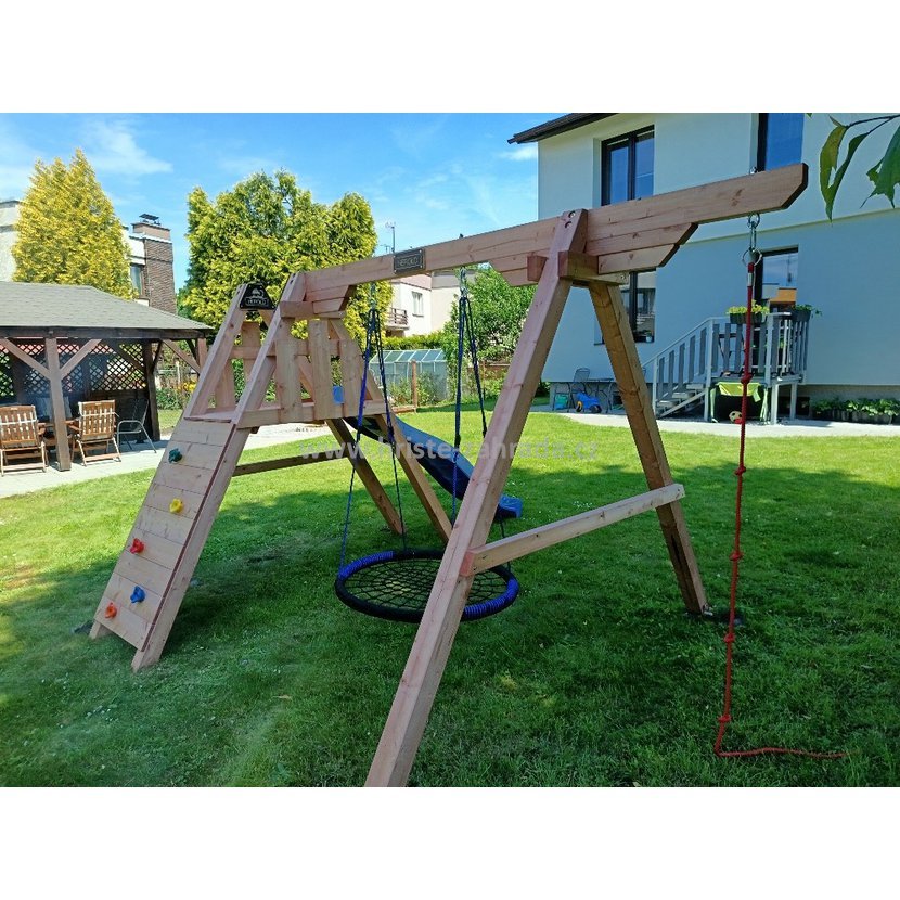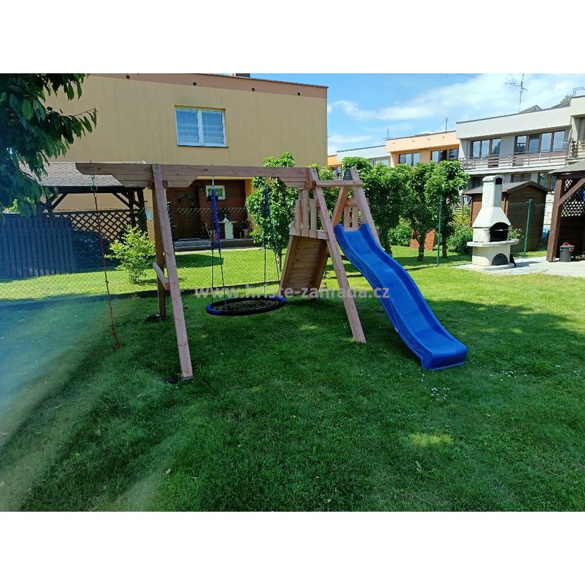 Dětská hřiště KRISTÝNKA. Rádi bychom Vám představili jedno z nejjednodušších dětských hřišť současnosti - KRISTÝNKA . Toto dětské hřiště je vytvořeno z kvalitních impregnovaných mimostředových profilů, které hřišti zabezpečují dlouholetou životnost bez jakýchkoliv známek opotřebení. Hřiště je již z výroby opatřeno jedním nátěrem (formou namočení) vodouředitelnou barvou v odstínu zlatý dub. Pro delší životnost dřeva je nátěr třeba pravidelně obnovovat.
