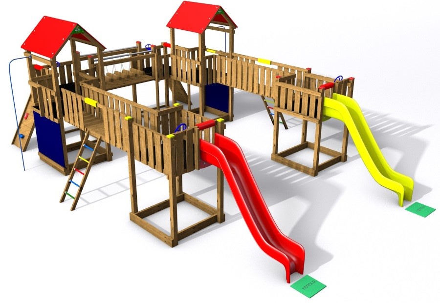 Pro zobrazení konečné ceny hřiště zvolte dvě ze skluzavek v souvisejících produktech.Moc pěkná herní sestava s dvěma kvalitními laminátovými skluzavkami vhodná pro mateřské školy, obce a restaurace. Dětské hřiště velmi dobře podpoří pohybovou aktivitu dětí a díky herním doplňkům, jako jsou lezecí stěny, požární tyče a dobrodružná lávka, bude o zábavu postaráno na dlouhý čas. Dětské hřiště je určeno pro děti od 3 do 14 let, na děti od 3 do 6 let je nutný dohled dospělé osoby.