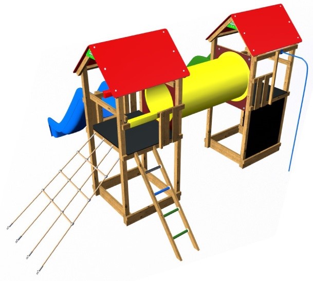 Moc pěkná herní sestava s dvěma kvalitními laminátovými skluzavkami vhodná pro mateřské školy, obce a restaurace. Dětské hřiště velmi dobře podpoří pohybovou aktivitu dětí a díky herním prvkům, jako je lezecí stěna, šikmá lezecí síť, požární tyč a průlezový tubus bude o zábavu postaráno na dlouhý čas. Dětské hřiště je určeno pro děti od 3 do 14 let, na děti od 3 do 6 let je nutný dohled dospělé osoby.