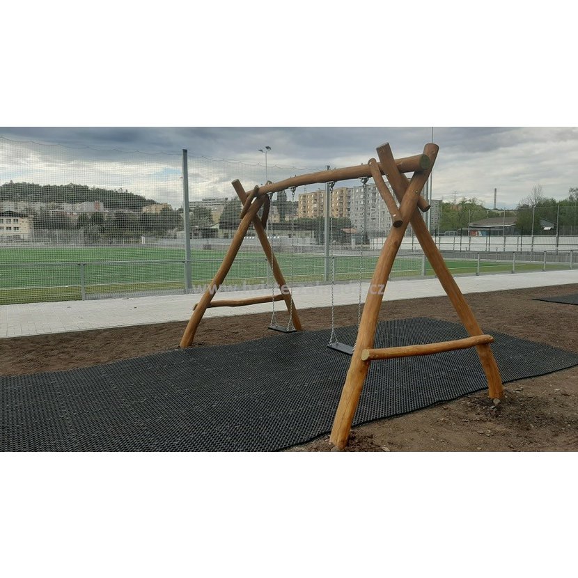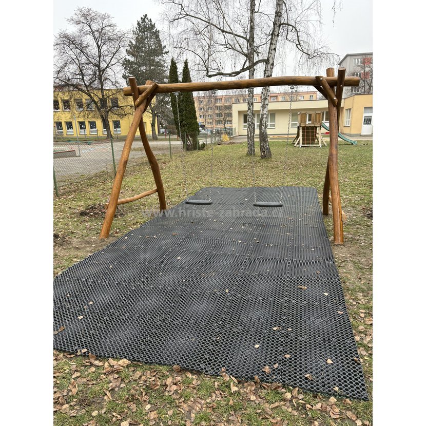 Jako vhodný tlumivý povrch doporučujeme dopadové desky Grass, které jsou jednoduché na instalaci i vlastní údržbu a zároveň chrání trávník pod hřištěm proti vyšlapání. Pro houpačku Duoswing II Akát je zapotřebí 23 m2 dopadové plochy.