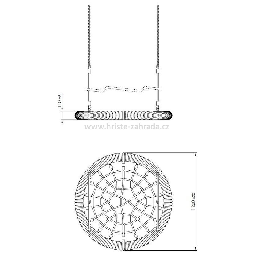 Masivní konstrukce z 16mm lan s kovovými úchyty zajistí možnost houpání až pro 6 dětí. Hnízdo je natolik stabilní, že je možné jej použít i na hřiště pro velké děti.