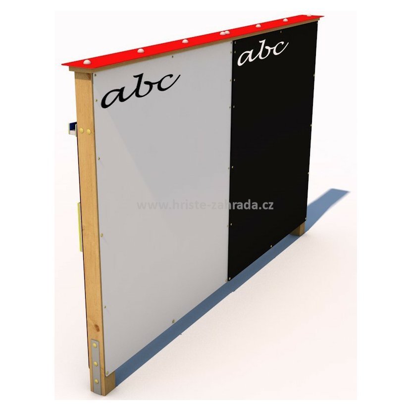 Druhá strana je vybavena kreslící tabulí, vhodnou pro křídy i tabulové fixy, což podporuje kreativní činnosti dětí.