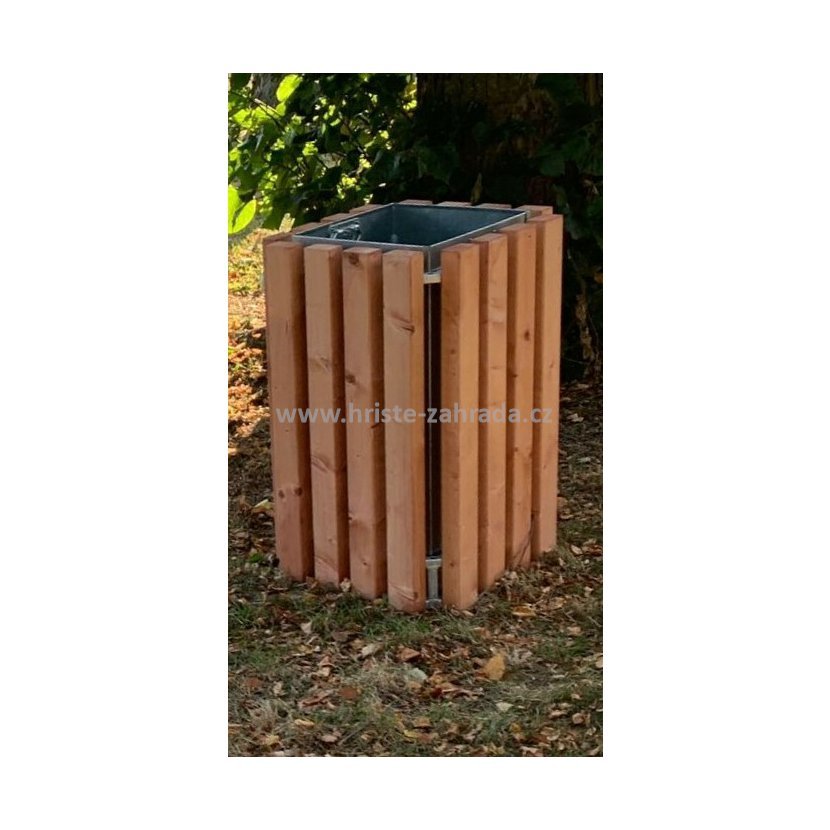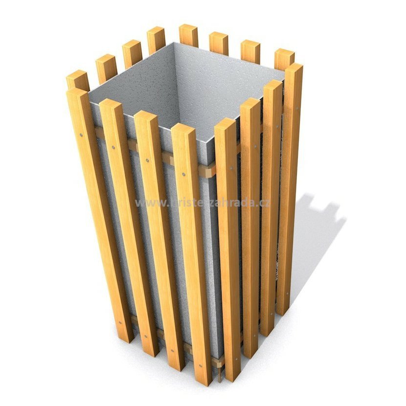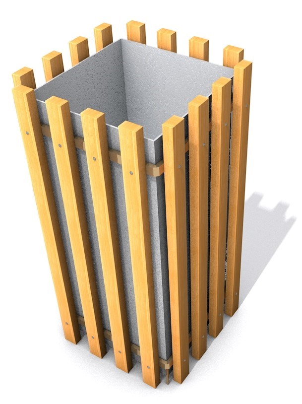 Odpadkový koš z dřevěných latí s kovovou vnitřní konstrukcí je ideální pro veřejné parky, dětská hřiště, nebo školní areály.