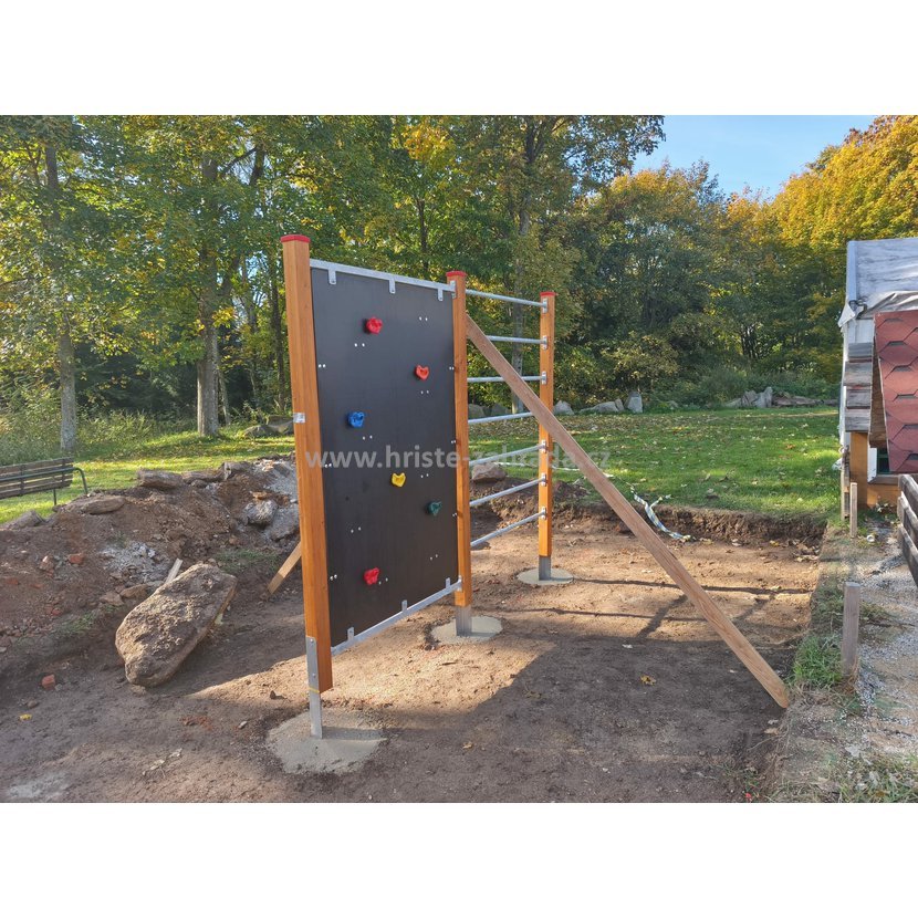 Sestava Fairway 1 je tvořena ze dvou polí různé obtížnosti. Jedno nabízí šplh po žebřinách a druhé pole umožňuje lezení po horolezecké stěně s barevnými kameny na jedné straně a dřevěnými špalíčky na straně druhé. Díky těmto prvkům sestava výborně rovíjí pohybovou aktivitu dětí, soustředění a silu.